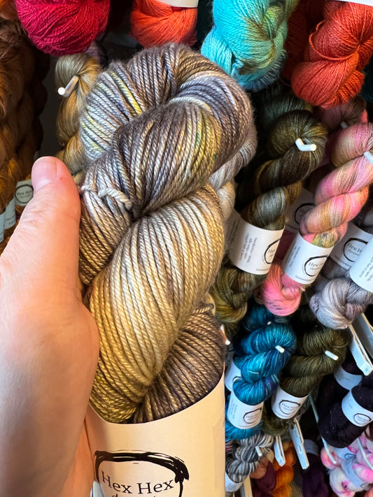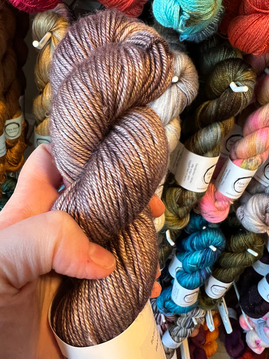Dásamlegt DK garn sem okkur finnst frábært í flíkur, silkið sér til þess að flíkin fellur sérlega vel (drape) og glansinn mjög fallegur.
