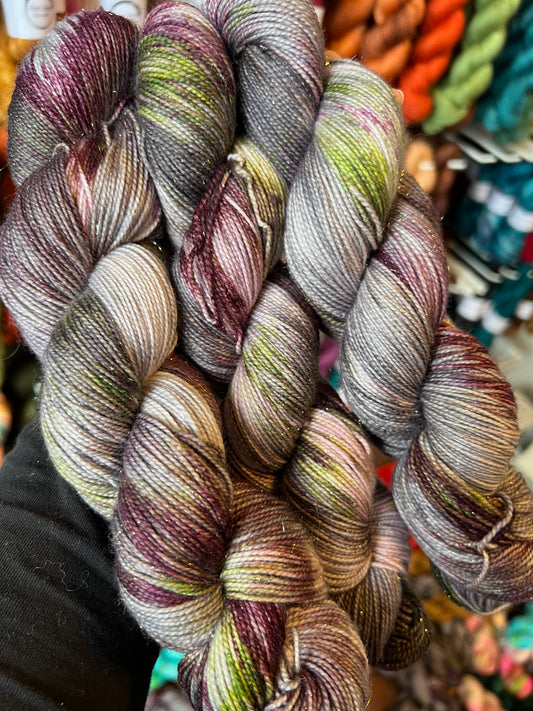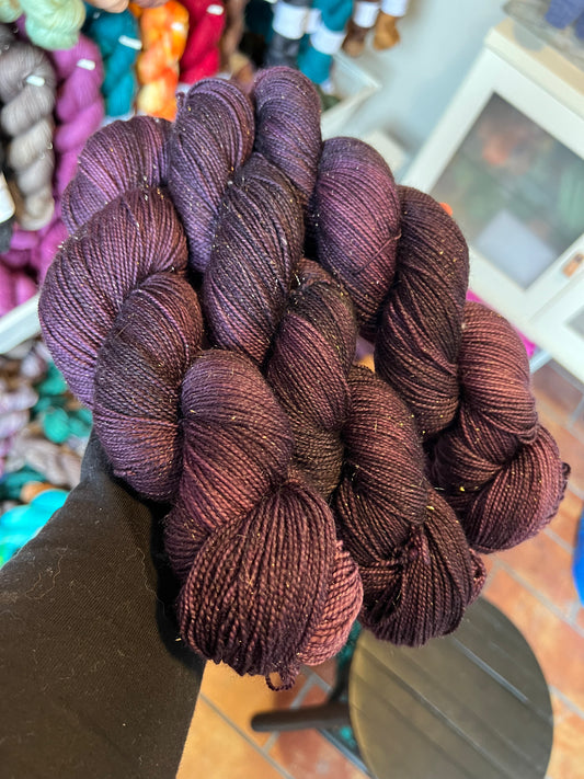 75% superwash merinó/ 20% nylon/ 5% gold stellina