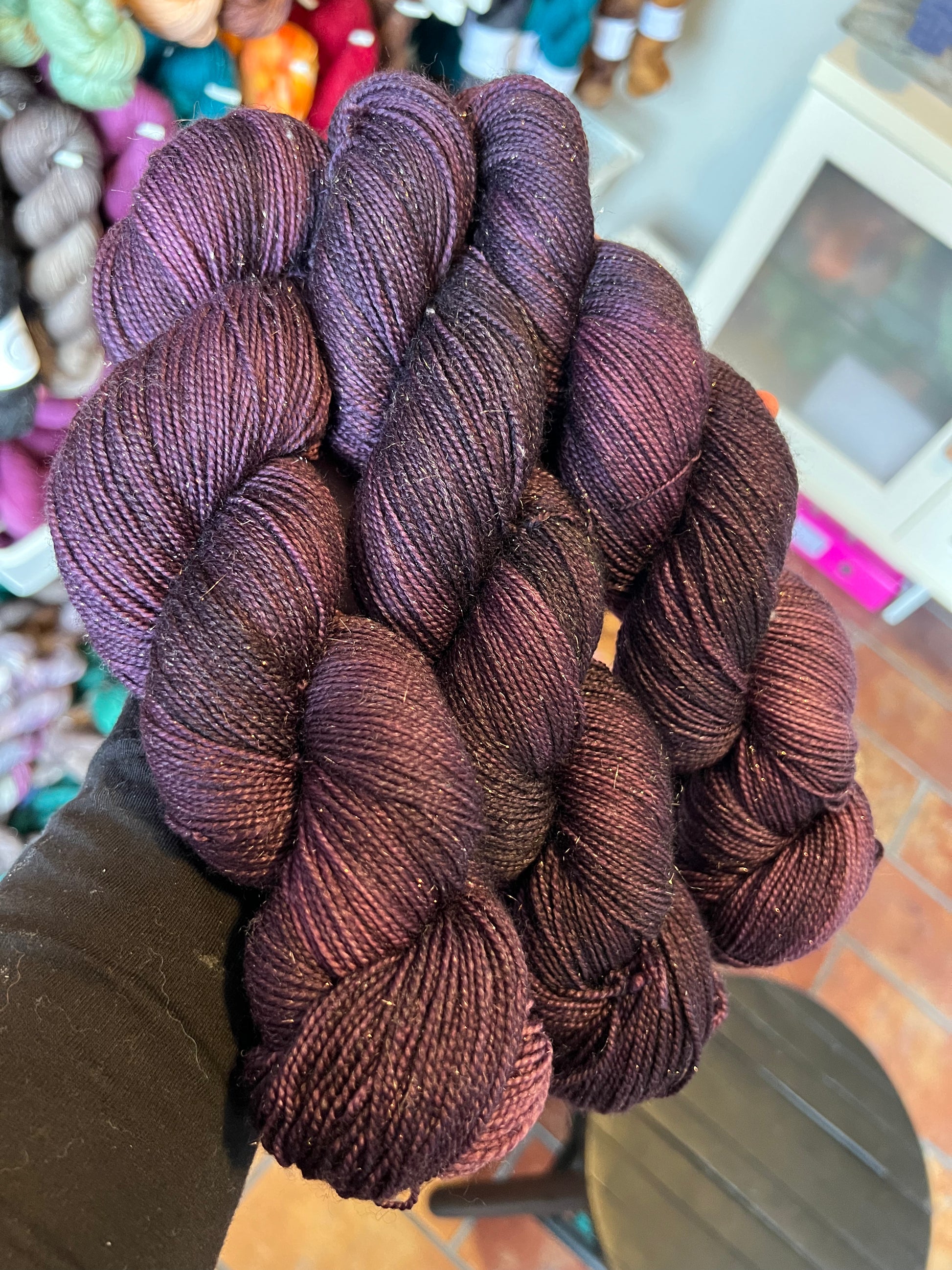 75% superwash merinó/ 20% nylon/ 5% gold stellina